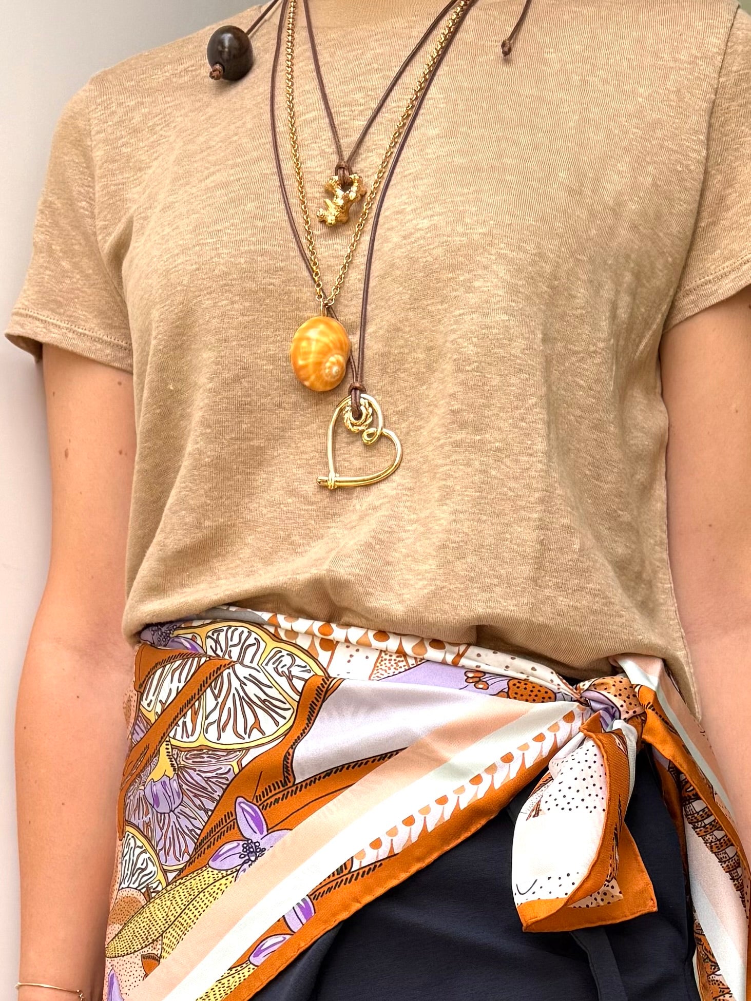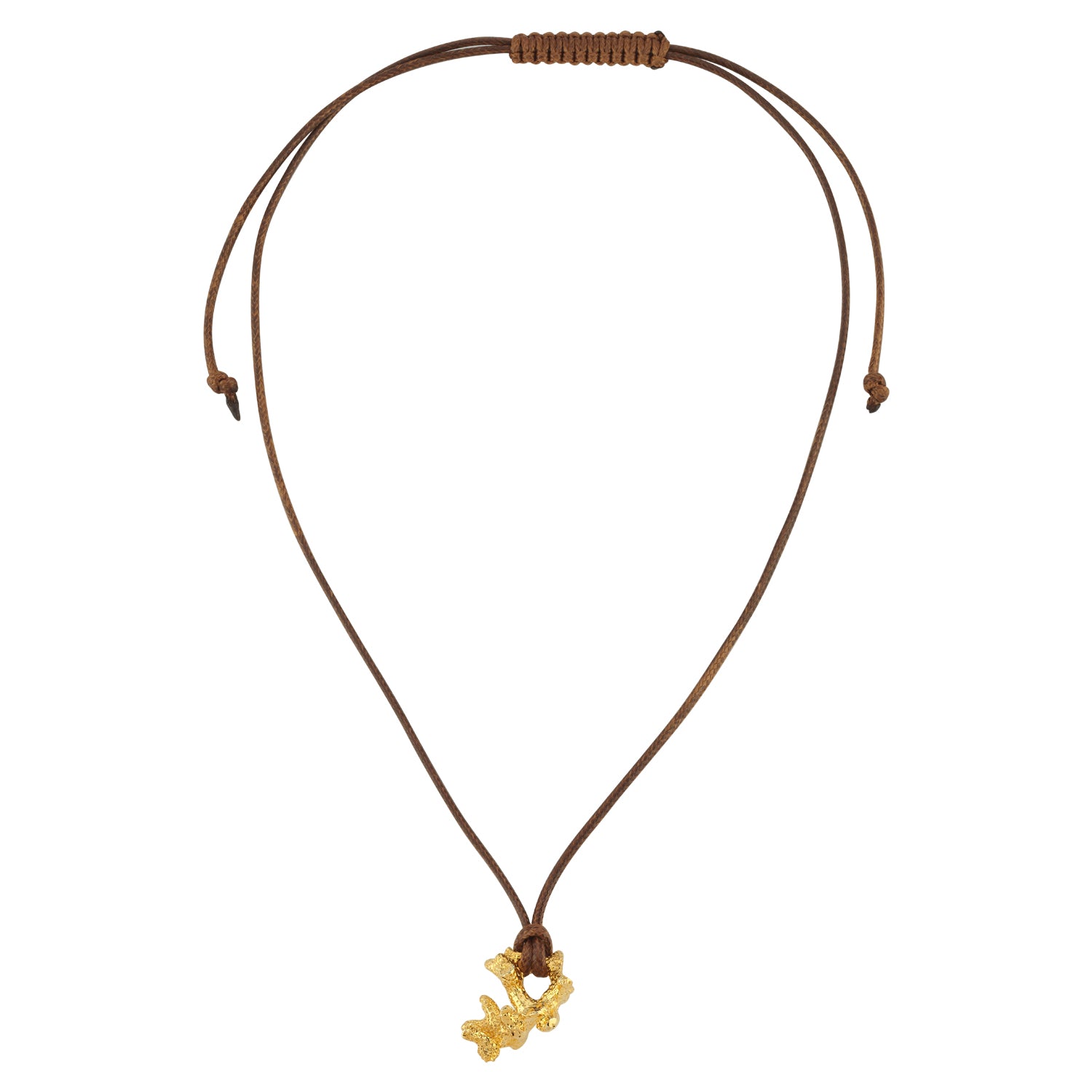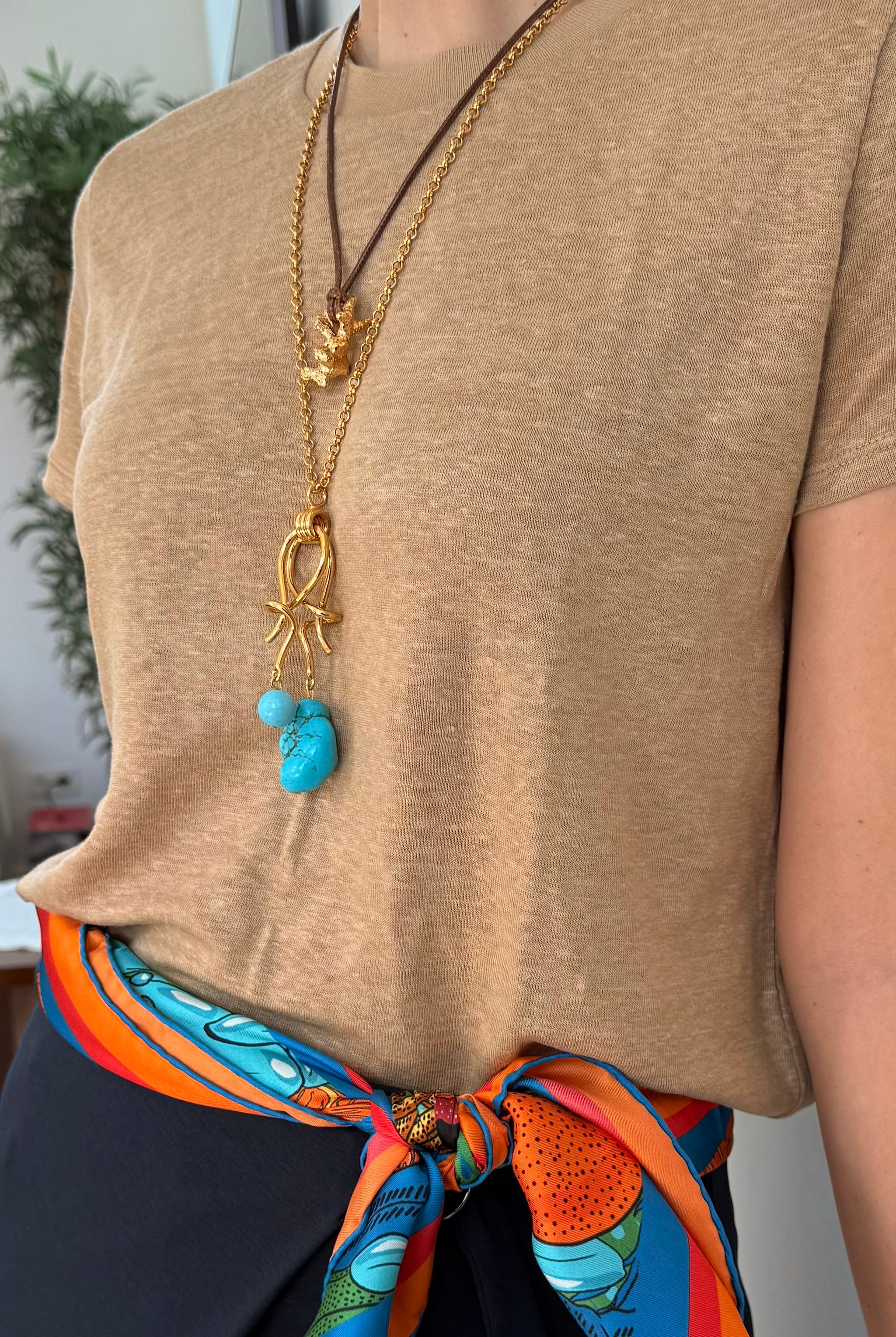 CORAL NECKLACE WITH BROWN ROPE